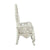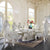 Product Feature: ??Single Pedestal Dining Table ??Fixed Table Top ??Hollow Carving Design ??Padded Seat & Back Cushion ??Acrylic Diamond Tufted Back Cushion ??Nailhead Trim ??Curio w/Touch Light