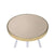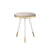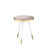 Energize your living space with this Mazon side table. This table features white paint-dipped spindle legs, with a round top. The smokey mirror table top is accented with an antique brass creating a unique and elegant addition to any room.