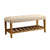 Bench (Armless/Backless) Open Storage: Slatted Shelf Tufted/Padded Seat Cushion: Polyester Fabric Wooden Tapered Legs & Shelf: Oak Finish Clearance Betwee Seat & Shelf: 8 Inches (215mm)