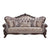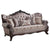 Enhance your formal living room with this elegant traditional 3-seater sofa. Part of the Wahkoowah collection, this sofa features an inner wooden frame that is sturdy. The outer wooden frame is finished with gold trimmings. Faux leather upholstery is used throughout the backrest and sides of the seats and armrests feature jacquard fabrics that accommodate the sofa. Five decorative throw pillows are included with this sofa.