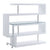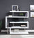 Product Feature: Writing Desk with Swivel Function 360 Open Storage: 4 Shelves Clear Glass Desk Top High Gloss Finish 2 Wheels Included Metal Table Base