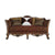 Assambled, with 5 Pillows Carved-Grooved Trim with Welt Trim: 2-Tone with Contrast Gold-Brush Accent, Poplar Wood (Backrest, Armrest & Base) Backrest Style: Arched Tight Back & Loose Seat Cushion (1+1) Seat Construction; Frame Hardwood, Pocket Coil Included, Streamlined Cushion with Welt Trim, Not Reversible Armrest: Sloped Wooden Queen Leg: Rubber Wood Material: Fabric (Backrest Solid Pattern, Front & Cushion 2-Tone Pattern) Pillows: Contrast Shapes & Patterns, Removable Cover