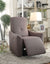 KD Back, (No Rocker or Glider) Power Motion: Reclining Mechanism (External Push-Button) Tight Back & Seat Cushion Welt Included Reclined Angle: 155/160 Degrees Recommended Distance between recliner and wall: 6" (15cm)
