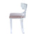 Assambled, Armless Chair (Mid Backrest) Stationary Seat: Standard Dining Height Padded Seat: Velvet Fabric Tight Seat Acrylic Backrest: Clear Finish, "T" Shape, 15mm Clear Acrylic Seat Base & Leg Size: 2" x 2" (50 x 50mm) Material: Velvet (Pattern)