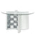 The round Noralie dining table features an eye-catching checkboard design with faux diamonds and paneled mirrors for a