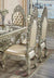 Product Feature: ??Double Pedestals Dining Table ??Fixed Table Top ??Table Top w/Resin Floral Inlay ??Hollow Carving Design ??Padded Seat & Back Cushion ??Curio w/Touch Light