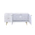 Rectangular TV Console Storage: 2 Drw RF & 2 Wooden Doors LF (Inside: 1 Adj. Shelf & Cord Mgmt: Back Panel with Pre-Cut Hole)) Front Drawer/Doors: Raised Grid Pattern CONSTRUCTION Wooden Case-Frame: White Finish, MDF Metal Tapered Leg & Crossbar: Gold Finish, Height: 9 Inches Drawer: GLIDE Side Metal (Ball Bearing, 3/4 Ext.), Dovetail Not Included, Felt-Lined Not Included, Safety Stop Not Include, Manual Close, Hardware: Metal Top Edge Pulls, Gold Finish Drawer Inner Dimension: 19" x 15" x 7", Door Cabinet Inner Dimension: 43" x 16" x 21"H, Shelf Dimension: 16" x 7" x 0.6"H