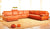 Modern contemporary furniture, sectional sofa set in orange with chaise. low wooden legs, double padded armrest and one adjustable headrest