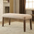 This beige linen-like fabric bench is lined with nailheads on the edge.