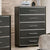 Offering a clean modern design and a no frills approach to ornamentation, this chest is your key to a sleek bedroom decor. The smooth gray finish keeps the collection grounded in sophistication, while chrome trim highlighting add a spark of flash and vibrancy accentuating the rigid angles and lines of the design.