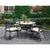 Host a quaint dinner party outside with this charming outdoor dining set. The lengthy table top features a beautiful reinforced top with elegant mosaic detailing. For durability and style, the antique black finished aluminum framework can be found along both table and chairs. Paired chairs also come with handy tie-back ivory cushions for extra comfort and charm.