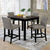 Come home and take a seat at this sophisticated counter height table set. The gray melamine top is durable and rests upon solid legs made of rubber wood, finished in black. With a no-frills design that celebrates straight lines and simple silhouettes, the bold stature of the table is balanced by soft, gray fabric chairs with button-tufting and gently curved backs.