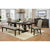 A strong table means a strong family. It becomes the heart of the home, where everyone sits down and enjoys each other's company. The pedestals and trestle make for a handsome silhouette. A matching bench provides seat variations that can be fun but also showcase the beauty of the set. The chairs are fabric upholstered with nailheads dotting the trim. Simple and rustic.