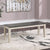 The weathered Antique White brushed finish of this set reflects the organic appeal of a rustic farmhouse environment, but the designs contained within are the stuff of legend. The grand base of the table maintains the theme with sweeping pillars attached to cross-connected feet. Throw in a bit of contrast with the natural color of the wooden top and a timeless ensemble is borne.