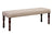 Bring some classy inspiration into your dining room with this warmed toned wood bench featuring stylish turned legs. Seat is beautifully wrapped with linen-like upholstery, making it the perfect addition to any comfortable dining area.