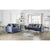 The dynamic vibe of blue satin emanates from this awesome looking sofa that is completely American made! Includes matching pillows of surreal design!