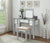 Vanities work best with large spaces. Big drawers for storage, a nice table top, multiple large mirrors for a full range of angles. Luckily this vanity features all of those. The mirrored paneling helps bring more light to your room and creates a shining beacon for you to follow and work at in the mornings. Sit at the matching padded stool and enjoy your prep time.