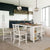 Part wine storage, part shelving unit, part dining table this versatile mix of fun and function is just what you need for your eating area. With this counter height dinning set you can host brunch and after dinner drinks all in the same spot. Cushy topped chair seats offer you plenty comfort. The creamy white finish is complimented by a light oak finished table top gives a warm country touch.