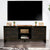Statement pieces are chosen to do just that--make a statement. And this wooden media console speaks for itself loud and clear. Its panels feature multiple deep grooves that run parallel from left to right, adding texture and more weight to an already visually hefty piece. This unique veneer treatment is brilliantly accentuated by the golden horizontal finger pulls. The dark walnut finish gives this piece a bold presence that is hard to ignore.