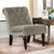 Without a doubt, this is one of the loveliest, novel chairs available. The soft gray linen fabric is irresistible to the touch and compliments an elegant theme of exceptional stature. Making the most of iconic Chesterfield designs, the styling is classic and the comfort unrivaled. The exquisite button-tufted accents and expressive nail-head trim combine for a charming visual. Ornately carved dark walnut-finished tapered legs provide a striking visual with their dynamic shape. The class and vintage elegance displayed here defies the 'new product' norm.