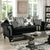 A gothic affair of unity, lustrous soft chenille and polished ebony-finished wood pair to form a dynamic design of truly classic stature. It's a tasty combination that boasts an authentic antique dynamic. Upturned vintage-shaped front feet enhance the carved wood accents while the accompanying pillows tie it all together in a nocturnal-themed variety. High density stuffed cushions guarantee the comfort, adding the necessary substance to the pleasing dark style.