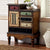 Pops of color stand out beautifully against the antique walnut finish. Multiple drawers and a compact cabinet ensure your accessories get stowed out of sight.