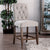 Rustic charm meets upscale design in the form of this stunning collection. The rustic wood grain takes you to a charming farmhouse somewhere in the countryside, achieving an inviting, homey atmosphere that will have family and friends coming back for more. Elegant beige linen-like chairs add sophisticated appeal with their wingback sides, button tufting and nailhead trim.