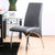 Curves define the foundation of this sophisticated dining set. The sweeping sides and the arched chrome chair legs combine to bring a modern feel to any space. Leatherette chairs come in gray, black, or white.