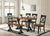 A different take on the common trestle base, this farmhouse dining table features dynamic Y-shaped legs and a two-tone finish. The beautiful grain table top is a warm antique oak color, featuring natural knots in each of planks it is made out of. Meanwhile, the table base and the chair frames are finished in antique black, showing off some of the wood underneath. The matching bench allows for a more varied seating arrangement than the usual, for a more casual conversation over dinner.