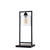 With a subtle reference to the industrial style, this contemporary table lamp features a unique black frame and a transparent shade.