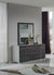 The Nova Domus Corrado Italian Modern White & Grey Mirror in smooth white gloss finish measures W39" x D1" x H41" adds glamour and is fitting in any living space. The dresser in the photo is available separately.